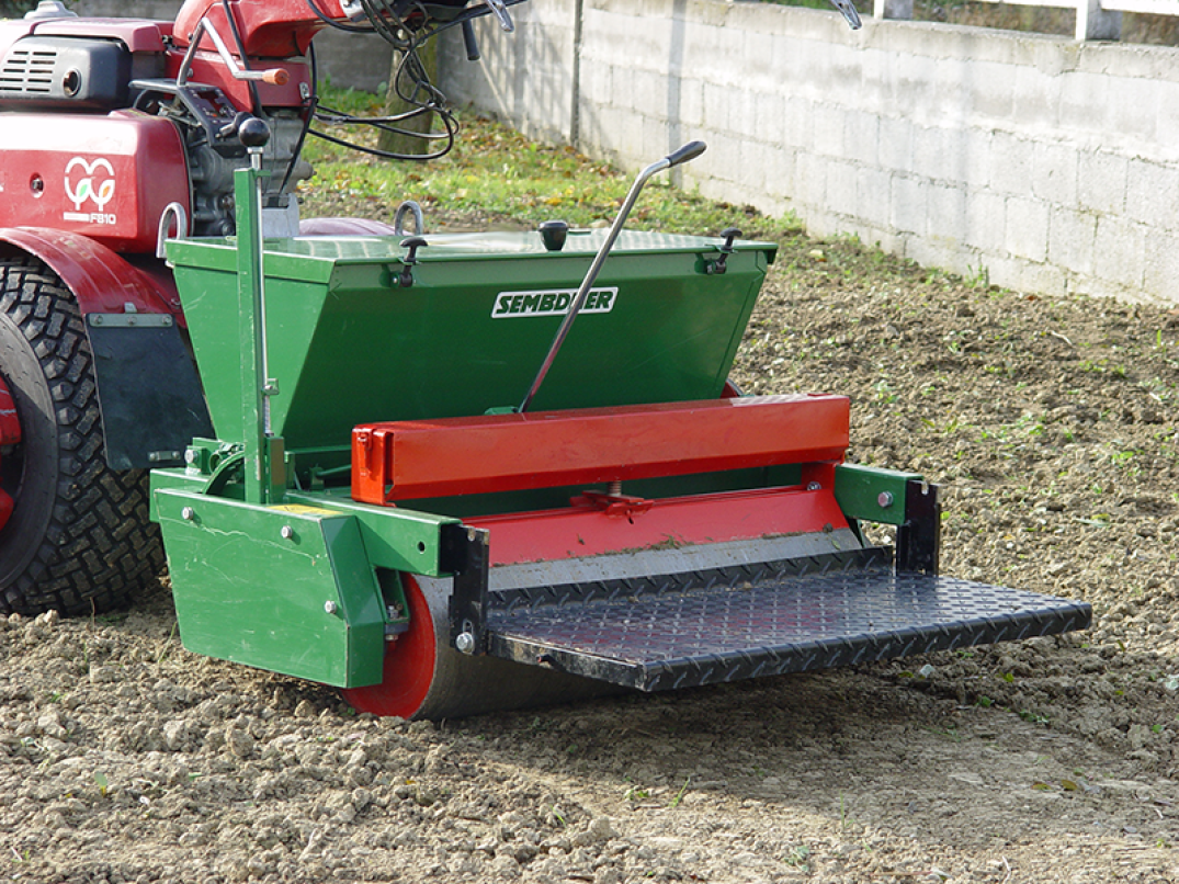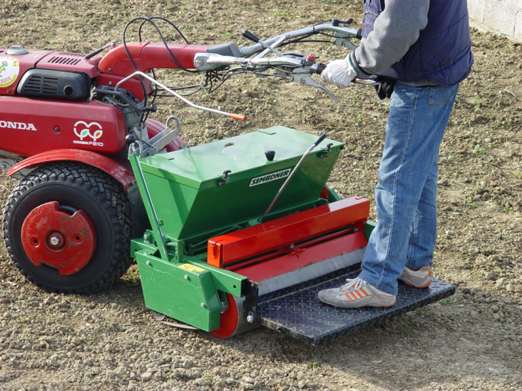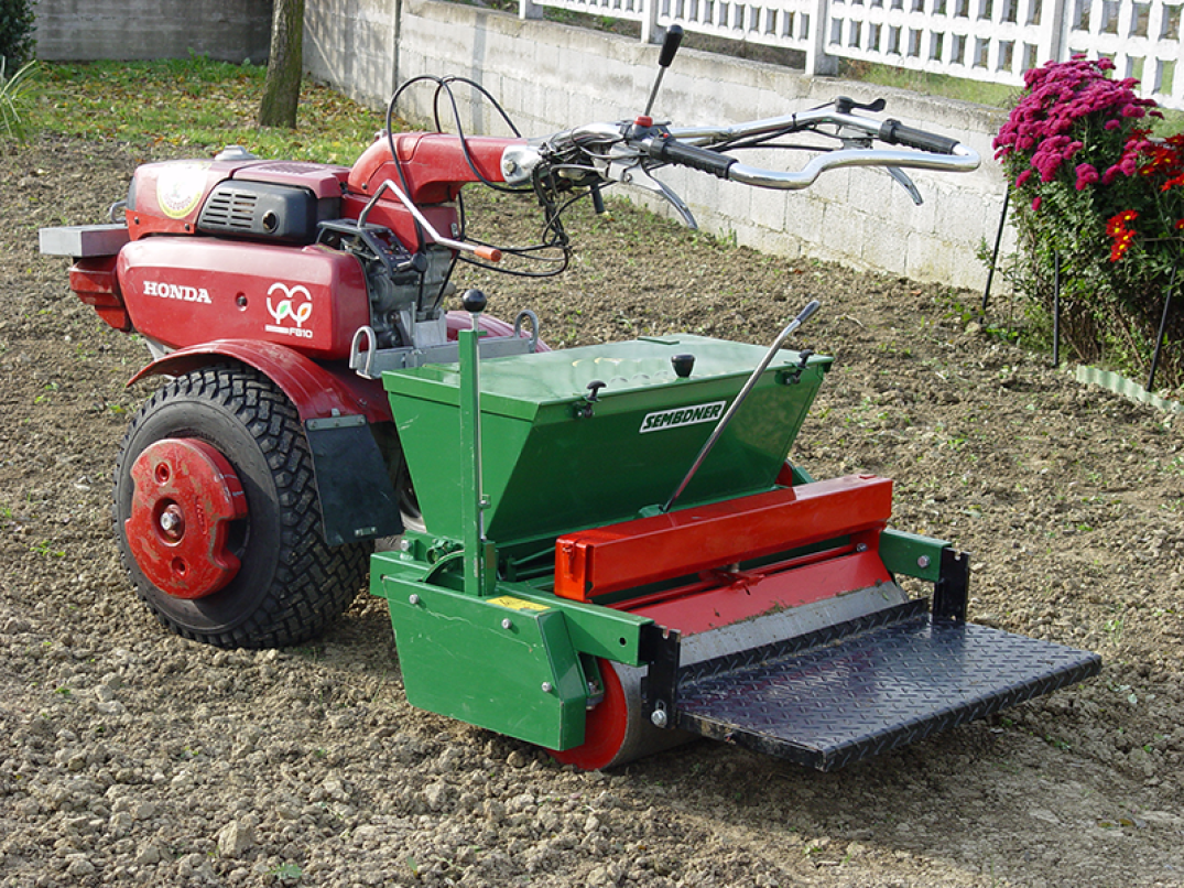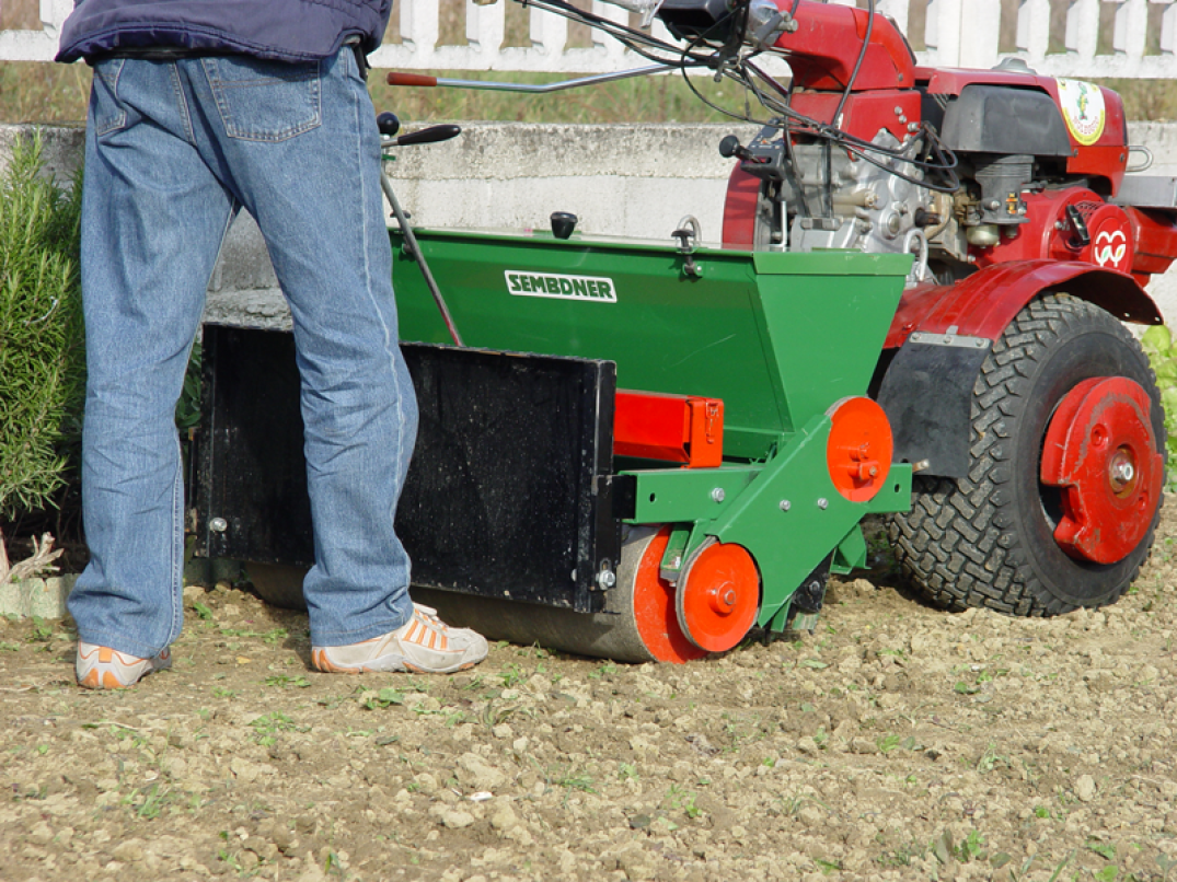 La seminatrice per motocoltivatore RS80M della Sembdner è compatta e di facile manovrabilità, ha una larghezza di lavoro di 80 cm e la capacità della tramoggia è di 50 lt.