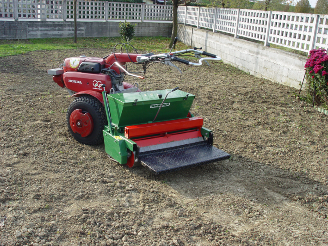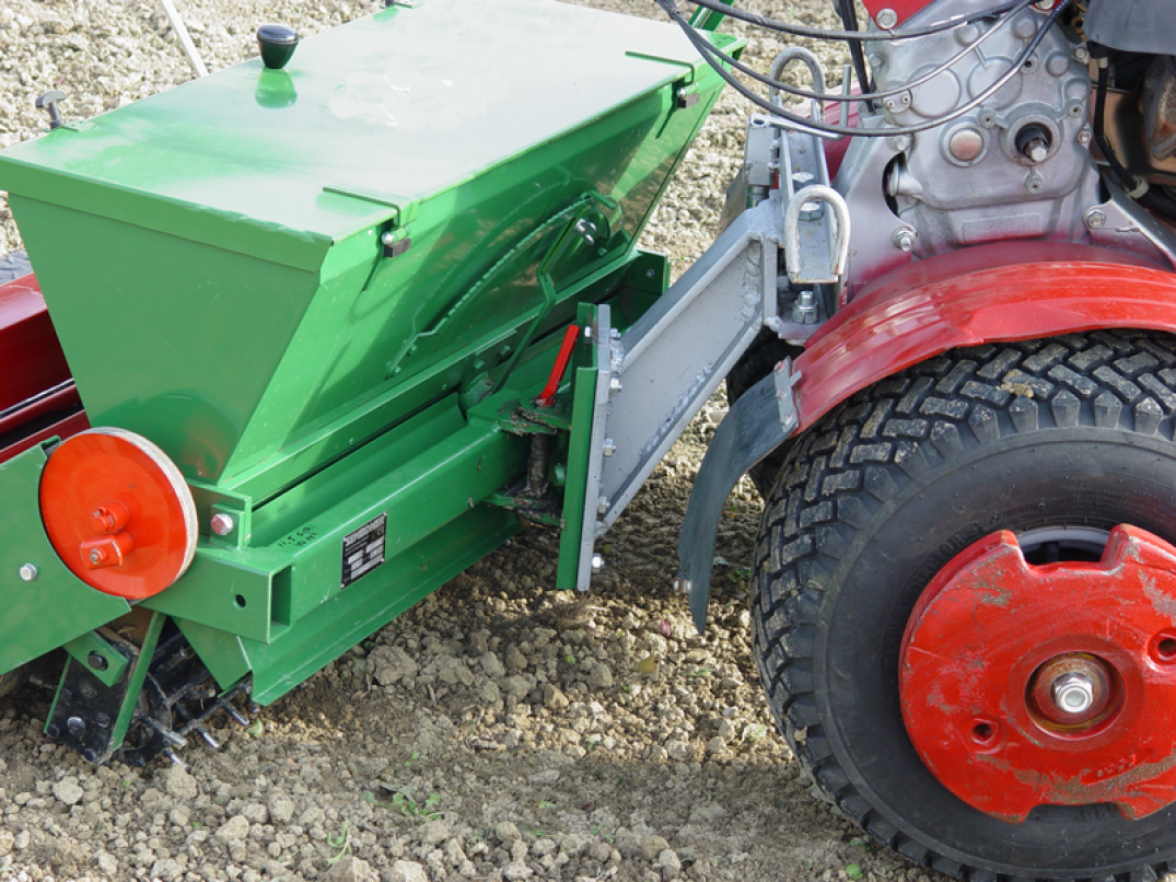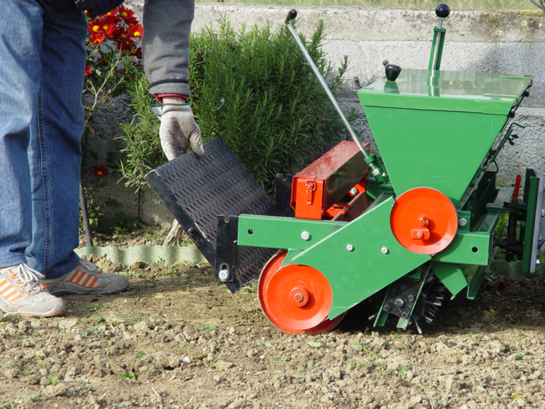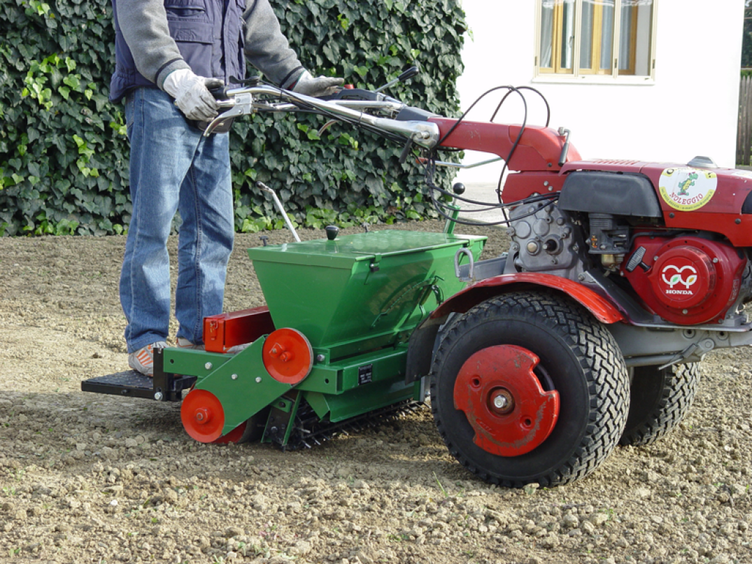La seminatrice per motocoltivatore RS80M della Sembdner è compatta e di facile manovrabilità, ha una larghezza di lavoro di 80 cm e la capacità della tramoggia è di 50 lt.