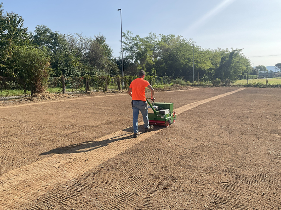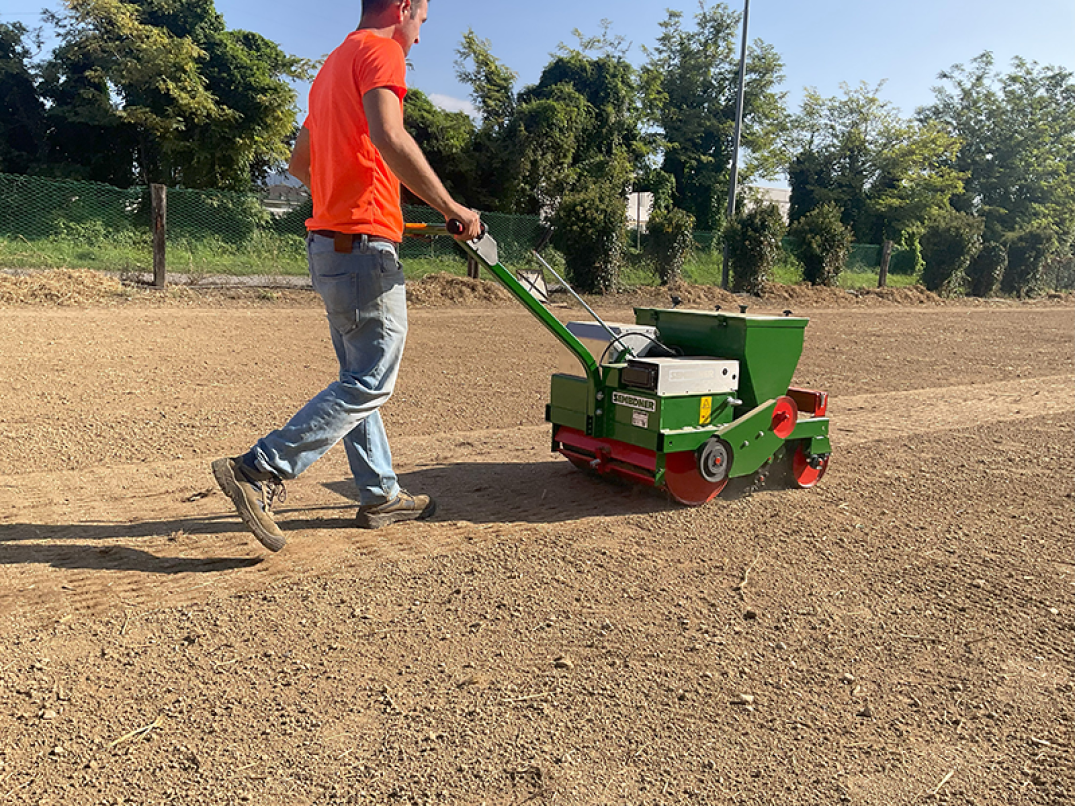 Infine il rullo posteriore comprime la superficie e le sementi in maniera perfettamente uniforme facendo germogliare i semi più velocemente.