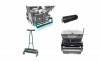 - due raschiatori a molla ripiegabili singolarmente sul rullo anteriore e sul rullo di posteriore.