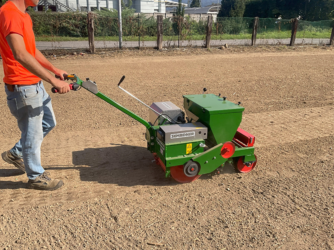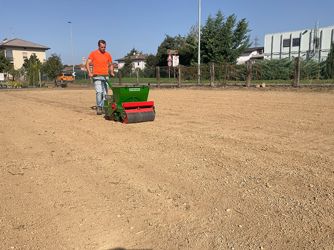 Infine il rullo posteriore comprime la superficie e le sementi in maniera perfettamente uniforme facendo germogliare i semi più velocemente.