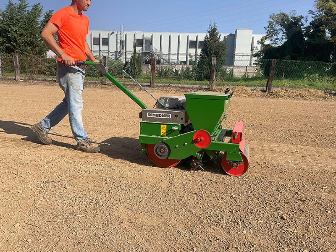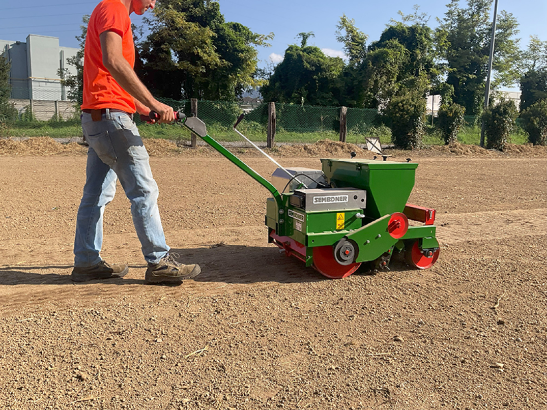 Infine il rullo posteriore comprime la superficie e le sementi in maniera perfettamente uniforme facendo germogliare i semi più velocemente.