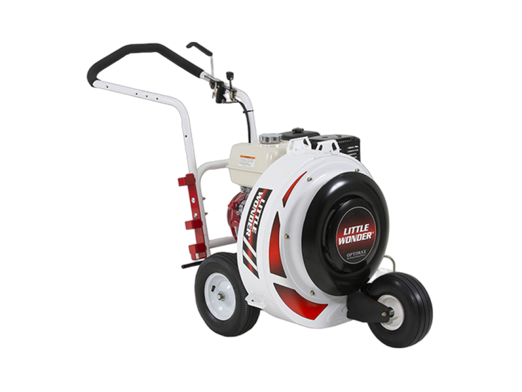 Il soffiatore a spinta Optimax di Little Wonder è dotato di motore 9 hp Honda, ha una elevata forza di spinta del flusso d’aria, l’uscita è regolabile sia frontalmente che lateralmente.