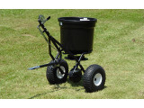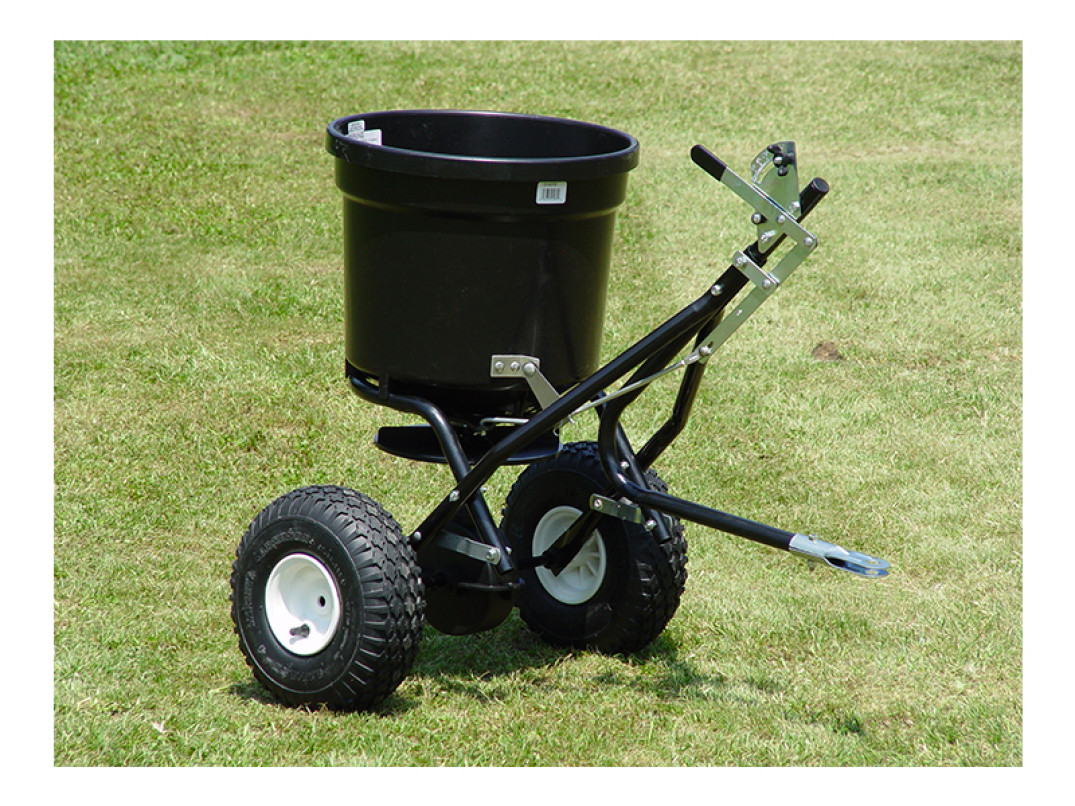 Lo spandiconcime rotativo modello 2100T EarthWay è dotato di tramoggia in plastica, con una capacità di 22,5 kg, gancio traino allungabile e ruote pneumatiche da 20 cm di diametro.