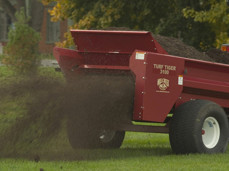 Lo spandisabbia a trascinamento con cardano 3100 Millcreek è ideale sia per grandi che per medie superfici. La tramoggia ha una capacità di 1.760 lt.