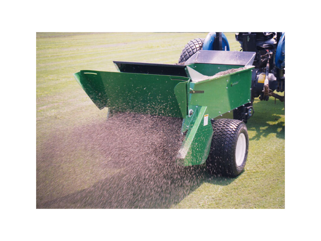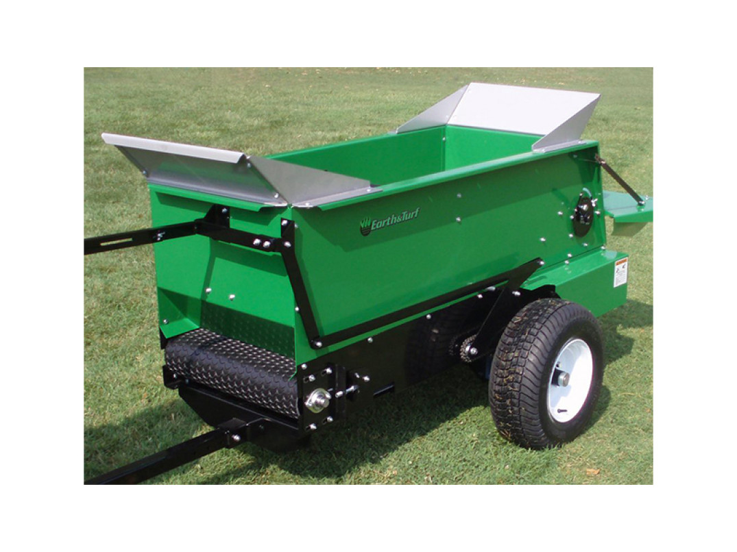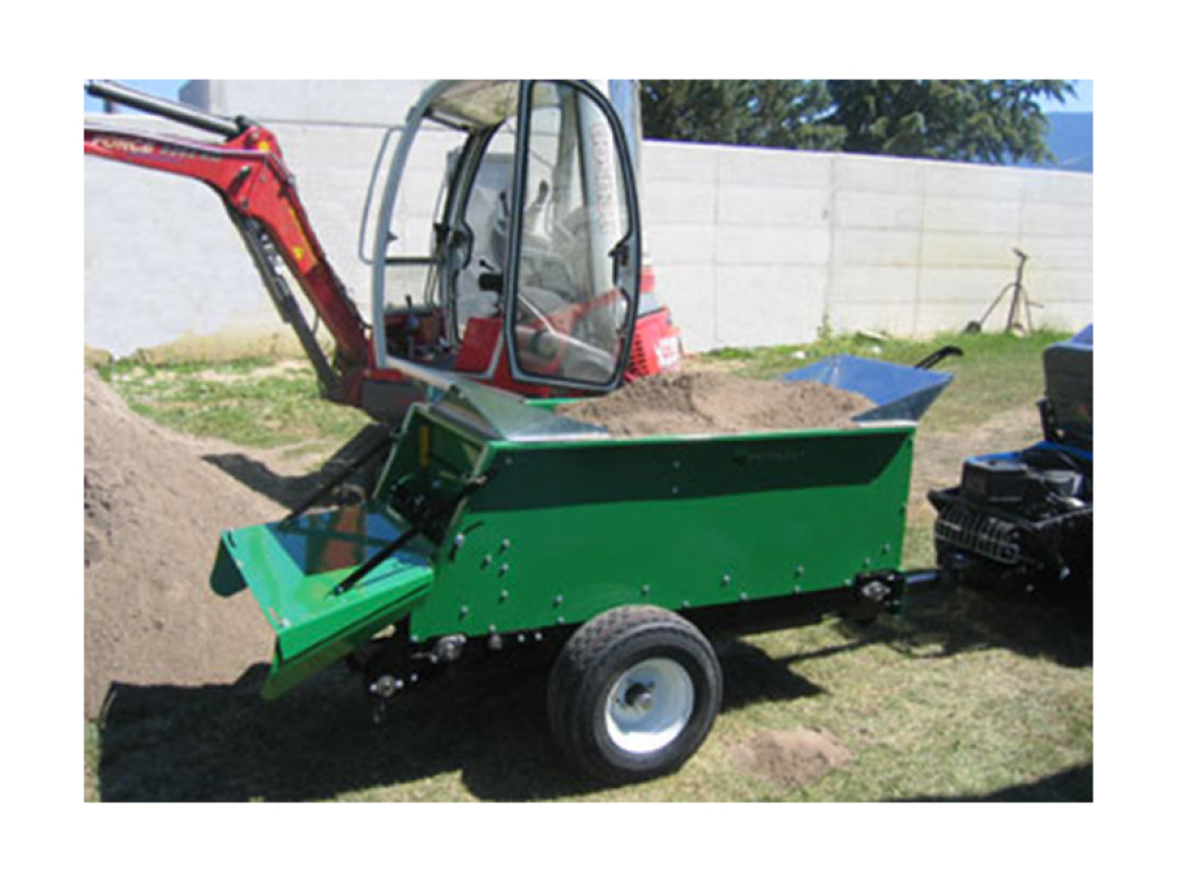 La base della tramoggia è formata da un nastro di trascinamento: sabbia bagnata, torba e terricci possono essere facilmente distribuiti in maniera uniforme.