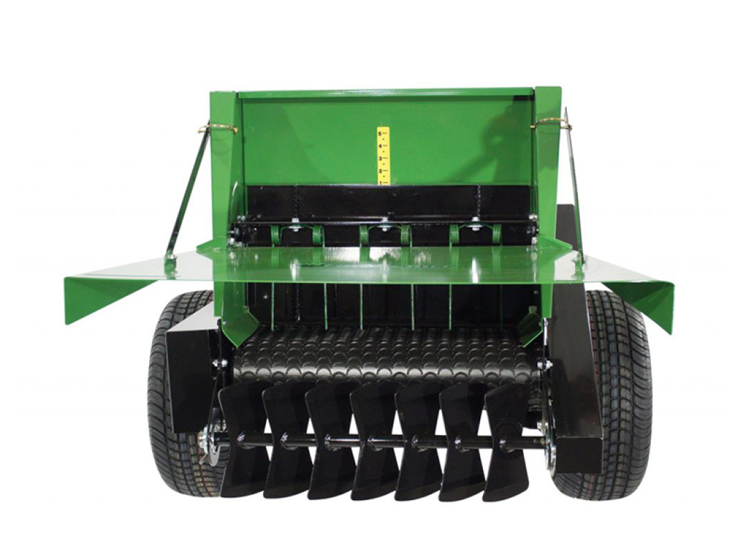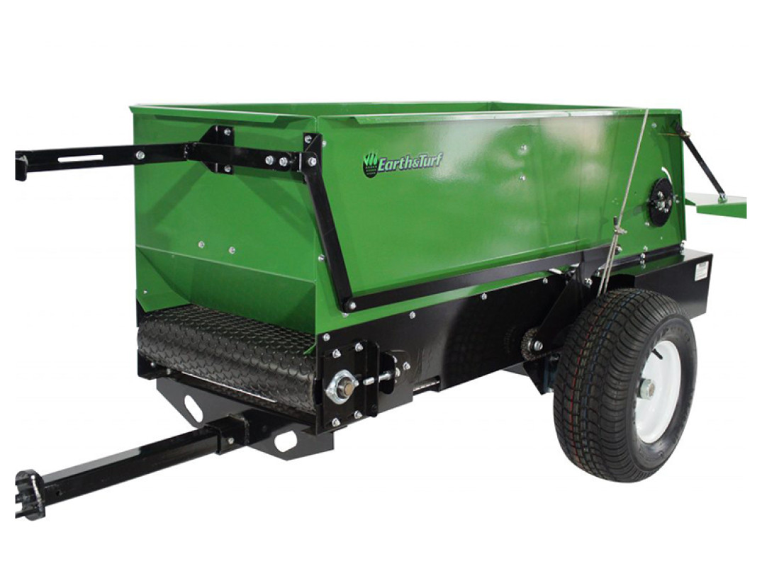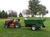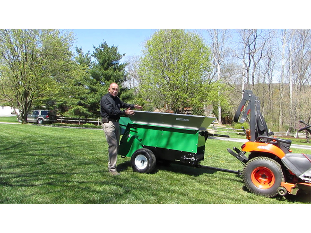 Un semplice attacco a traino rende i Multispread trainabili anche con un trattorino da giardinaggio.