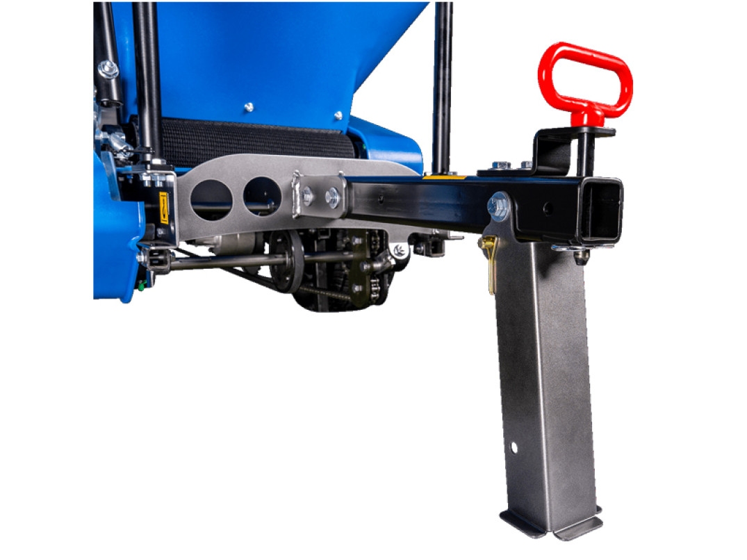 Dotato di gancio traino, fermo dell'apertura di distribuzione, gamba retrattile per lo stoccaggio e deflettore per peso aggiuntivo.