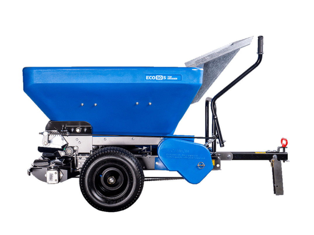 Lo spandi terriccio e spandi sabbia ECO-50S ha una capacità della tramoggia di 326 lt e un'ampia larghezza di distribuzione che va da 1,22 a 5,49 mt, grazie alla doppia elica. È in grado di gestire sabbia, argilla calcinata, miscela di terreno leggero, calce, terreni polverizzati, compost setacciato, terriccio setacciato.