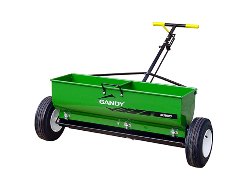 Lo spandisabbia/spanditerriccio manuale a spinta lineare per sintetico della Gandy offre una larghezza di distribuzione di 91 cm.