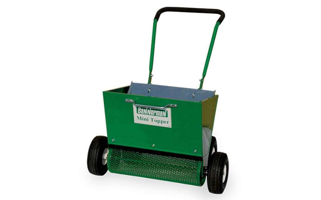 Il Mini Topper-PEAT della Bannerman viene utilizzato sia per la distribuzione di terricci sia per sabbia umida. Il rullo grigliato in combinazione con l'agitatore anti-intasamento permette una regolare ed eccellente uscita del materiale, anche umido, senza nessun problema o difficoltà.