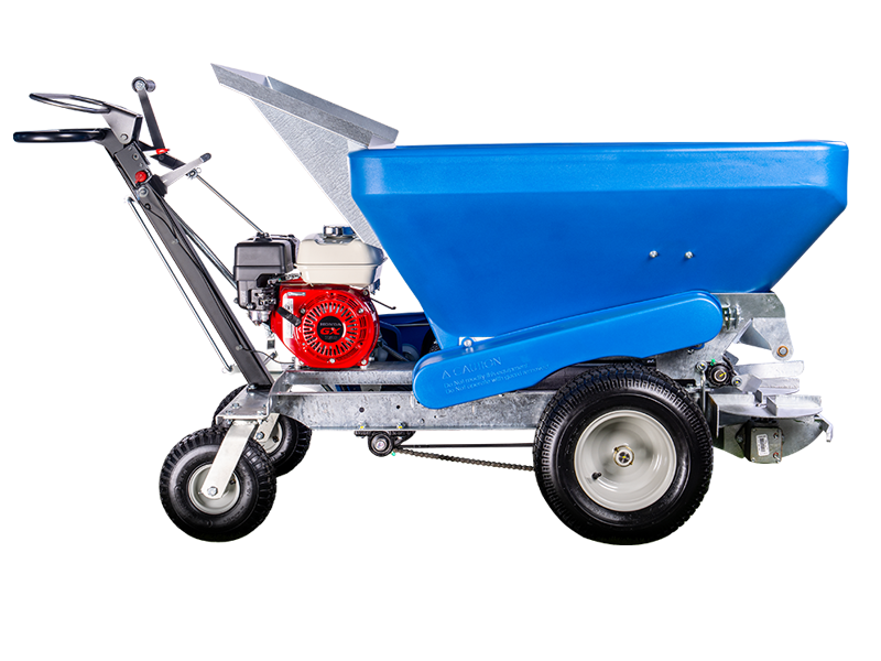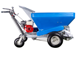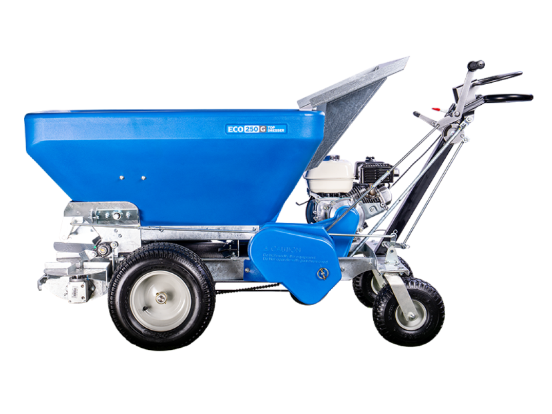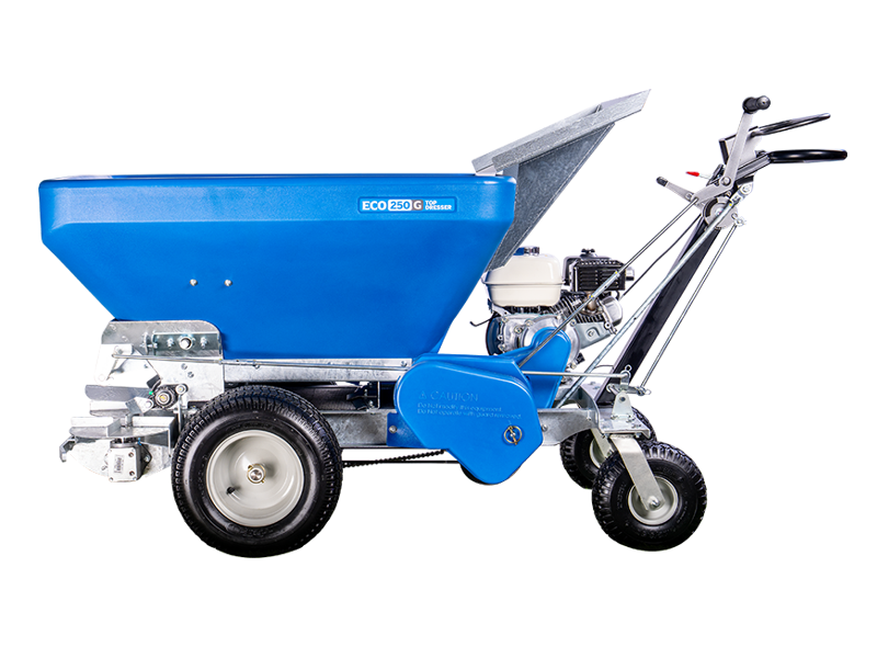 Lo spandisabbia - spandisale semovente rotativo ECO-250-G è dotato di componenti galvanizzate che lo rendono adatto ad un uso in tutte le stagioni e per spargere materiali corrosivi. L'ECO-250-G è adatto inoltre per sabbia, argilla calcinata, gomma granulare, miscele di terreno e terreni polverizzati, compost e terriccio setacciati. Ha due eliche, nastro trasportatore, tramoggia con capacità 330 lt e motore da 5.5 hp.