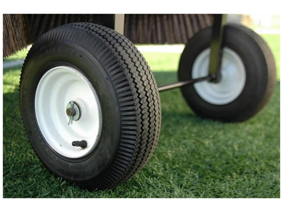 Un semplice gancio la rende trainabile con qualsiasi veicolo, mentre le due ruote di trasferimento ne facilitano lo spostamento evitando il contatto delle spazzole alla superficie d’appoggio.