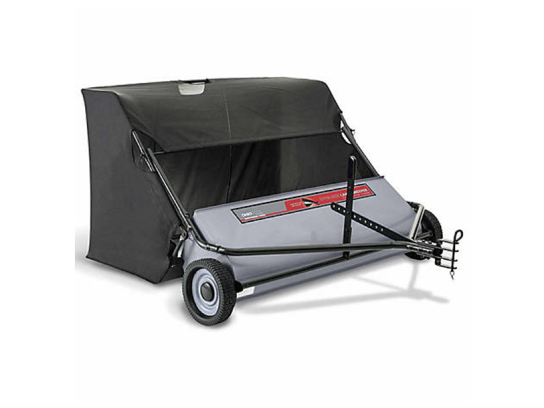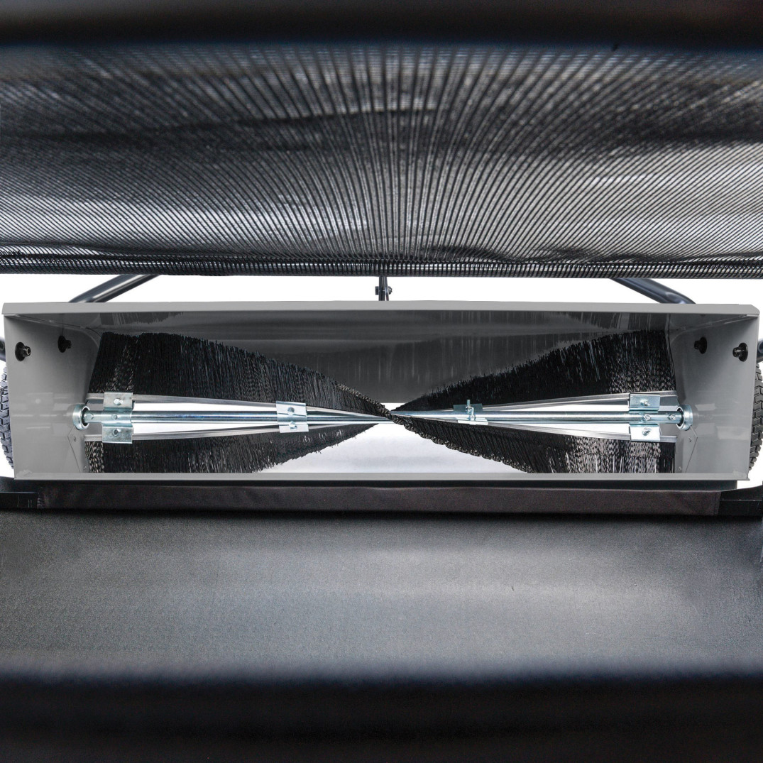 Le ruote di supporto semi-pneumatiche misurano 28 cm di diametro per 6 cm di larghezza; una corda collegata al cesto permette lo svuotamento del raccoglitore senza abbandonare la posizione dell'operatore.