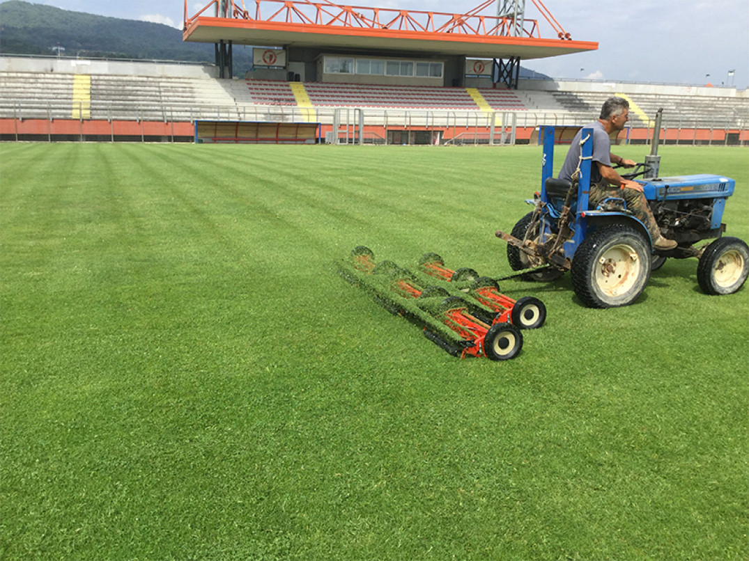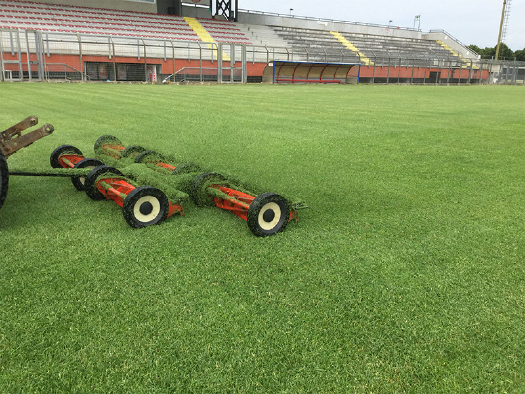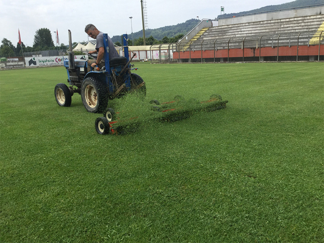 Il tagliaerba elicoidale HY501 ha una larghezza di taglio di 246 cm ed è dotato di 5 elementi e 6 lame ciascuno per una produttività di 20.000 mq/ora.