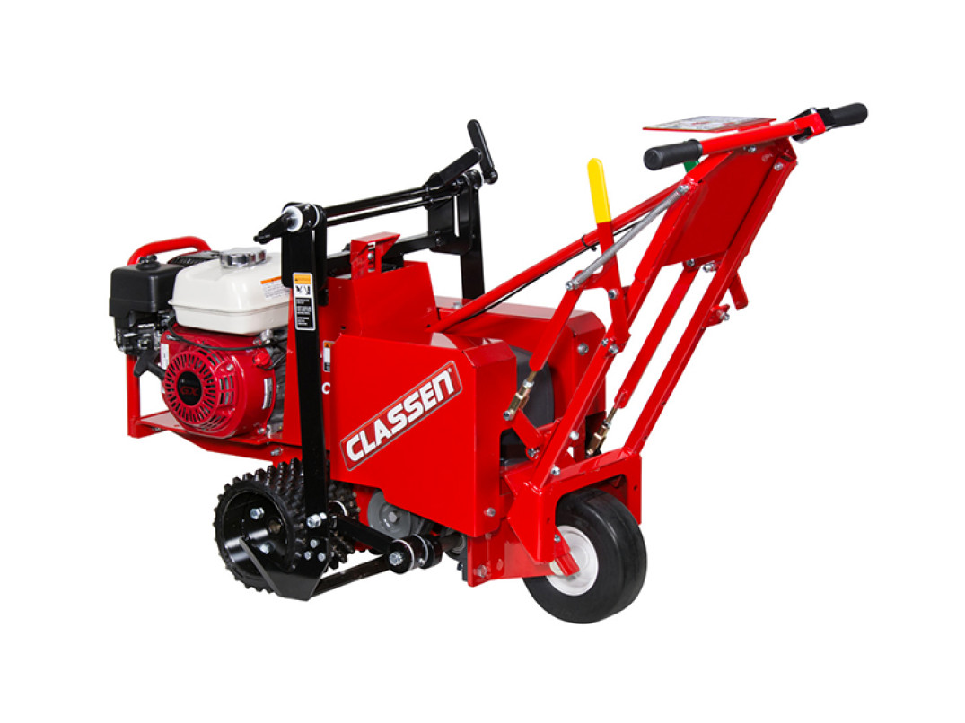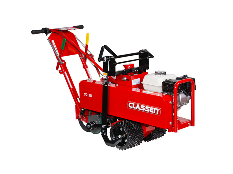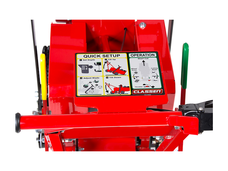 Le caratteristiche principali del tagliazolle Classen sono precisione e stabilità. La profondità di spessore della zolla è regolabile da 2 a 6 cm, la larghezza di lavoro è di 46 cm, inoltre offre una produttività di 1.100 mq/h.