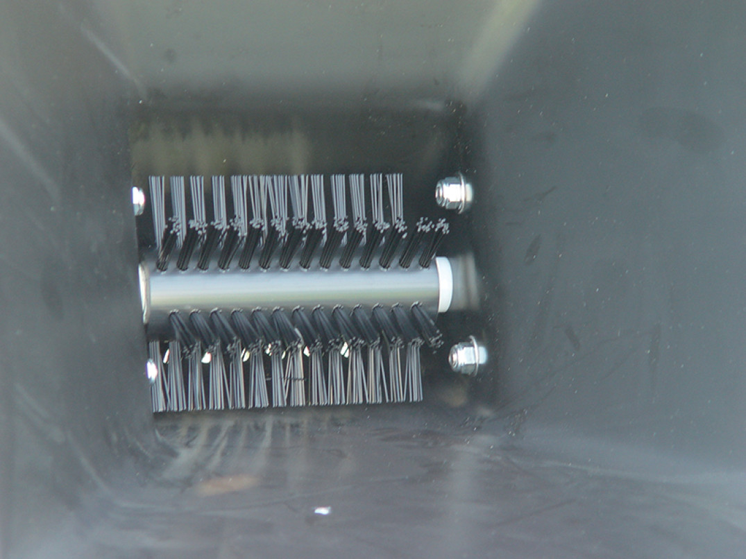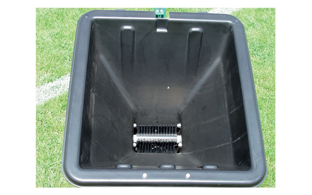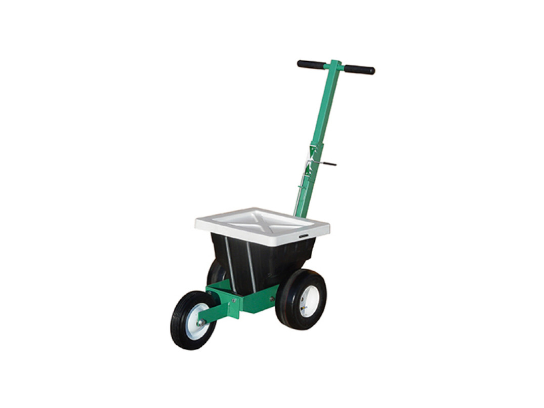 Un agitatore interno migliora la consistenza della polvere e la regolazione. Il telaio è in acciaio mentre la tramoggia, di capacità 16 kg, è in plastica molto resistente.