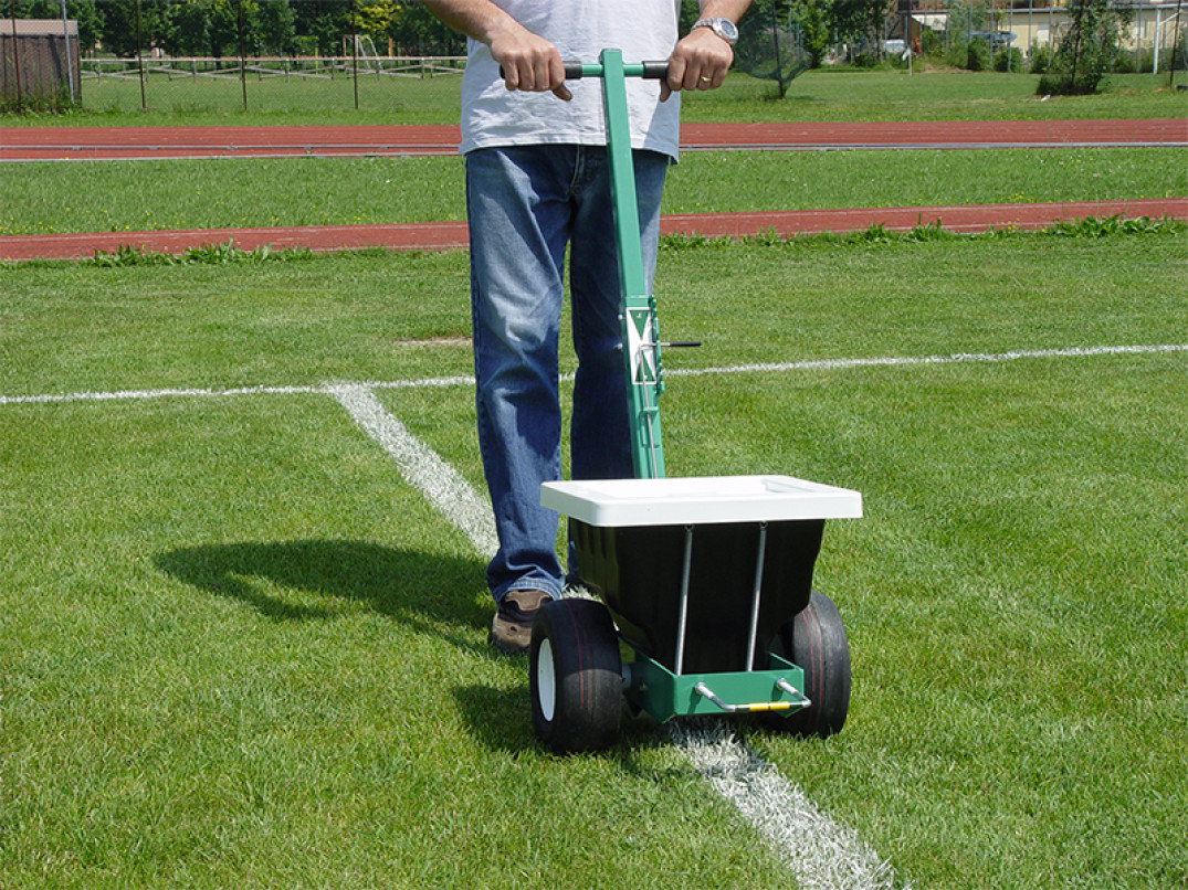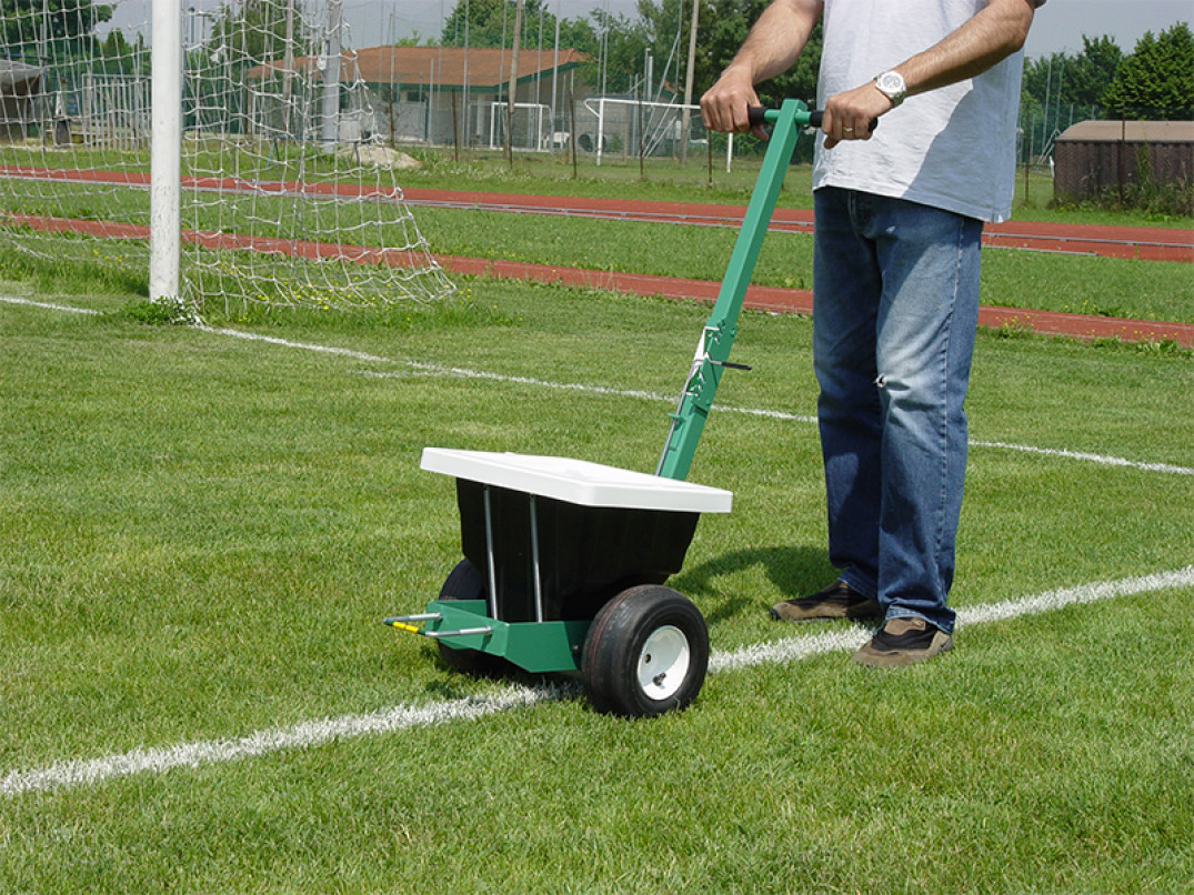 Il traccialinee a polvere per campi sportivi 35P è pratico e ideale sia per la tracciatura di interi campi sportivi sia per i piccoli ritocchi.