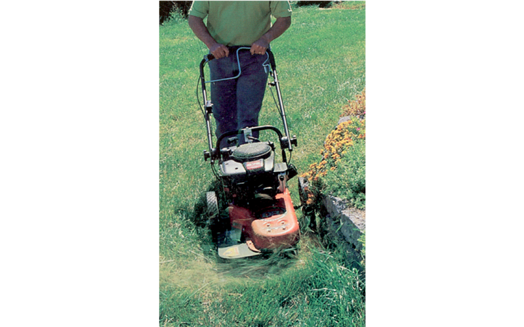 In questo modello è possibile spostare fuori centro il sistema di taglio, inclinando nel lato sinistro il telaio, mantenendo ferme le ruote di supporto, facilitando in questo modo le rifiniture lungo ostacoli come marciapiedi, passaggi, muri e pareti.
